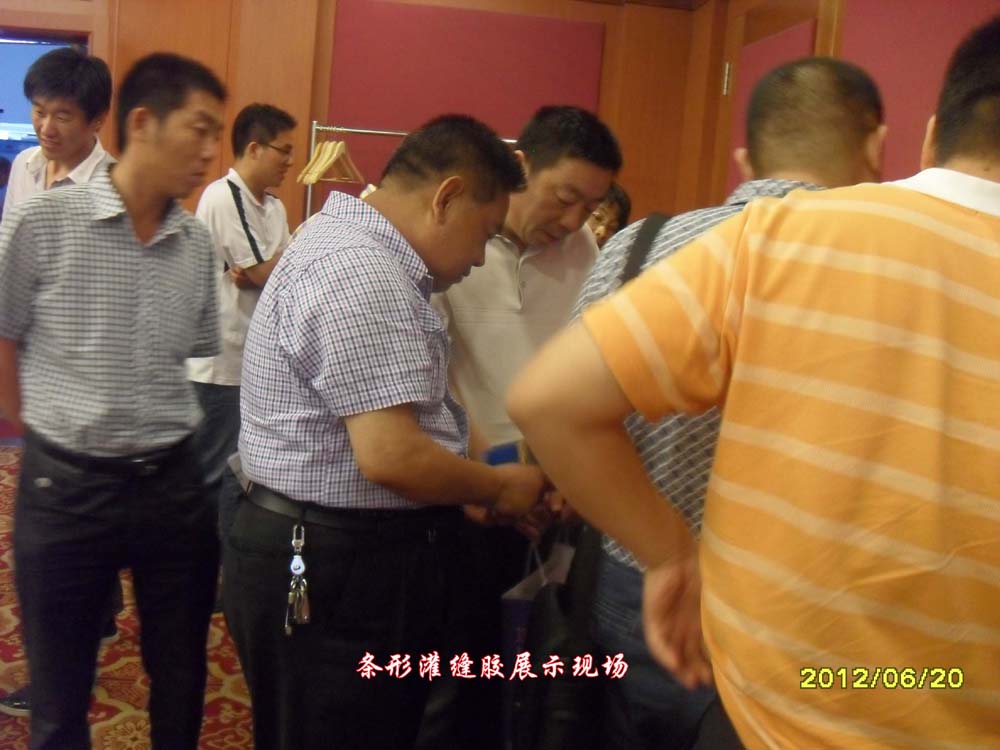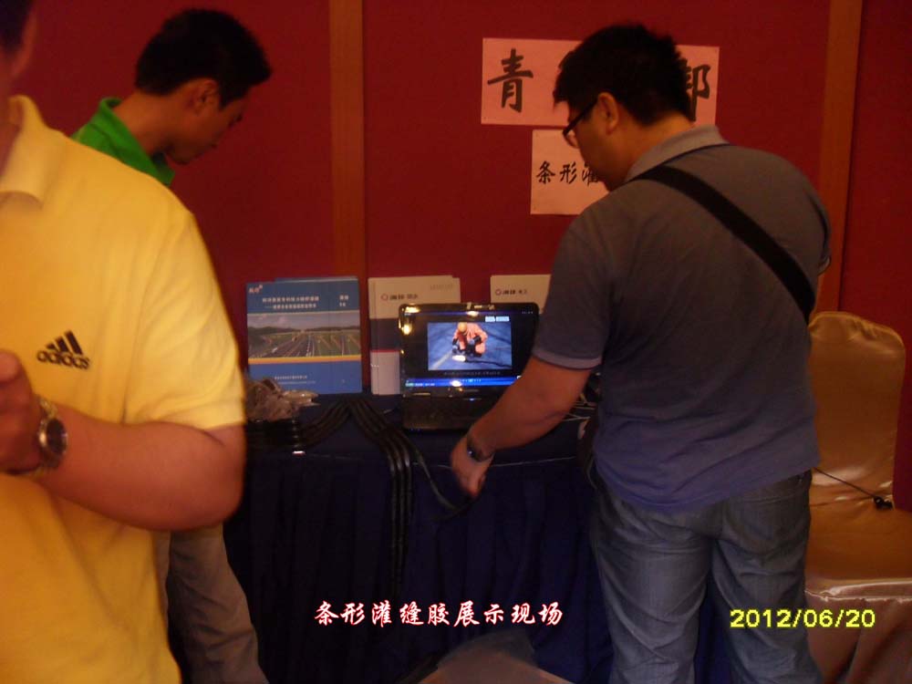润邦公司展示的条形灌缝胶以其独特的形态,高粘度、高弹性等优异的产品指标。引发行业专家、学者及企业领导的兴趣。该产品高温不碳化、低温不脆裂,施工简便灵活。尤其灌缝精确、牢固、不浪费。